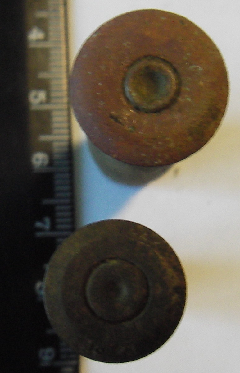 Доброго всем времени суток! Уважаемые форумчане вчера на копе попалась странная гильза. Прошу Вас определить от чего она. На фото рядом с ней гильза Мосинки(подняты вместе).