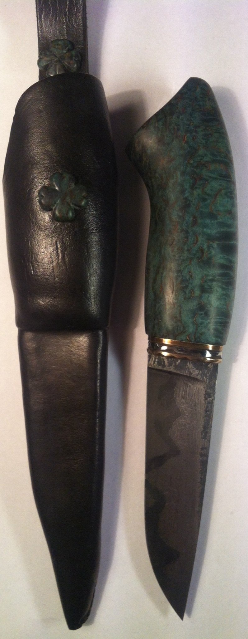 QUOTE(кривич @ Jan 8 2014, 21:16) Инкрустацию серебром делать не просто,нужно сначала насечь рисунок зубильцем ,причем в наклон и с расширением в" ласточкин хвост"затем в него заковывается проволока.Проблема пока ,нет серебряной проволоки.Может доберусь до ювелира и он мне натягает ее.Раньше пробовал на замках ружей и ножах.Короче, сам хочу утворить че нить с серебром. даров Володь....тож все хочу с всечкой заморочиться, правда по дереву пока...даж проволоку подкупил ужо, братья белорусы прислали, выручили, если надоть давай сведу с человеком...у нас чет дороговато стоит... ...а покаместь ишшо одного режика другу закончил прямось перед НГ...корелка, кстати, твоя))))))...касивишное всеж дерево....понакупил кучу-могучу разной древесины-экзотики на рукоятки...но Олька, говорит, когда мне нож делать наконец начнешь, то только из карелки...не лежит душа к буржуинской флоре, говорит...какой бы она изысканной не была....во как)))) ...эт предыдущий, дочкин....ща нарою фоты последнего. Вложенные эскизы изображений |