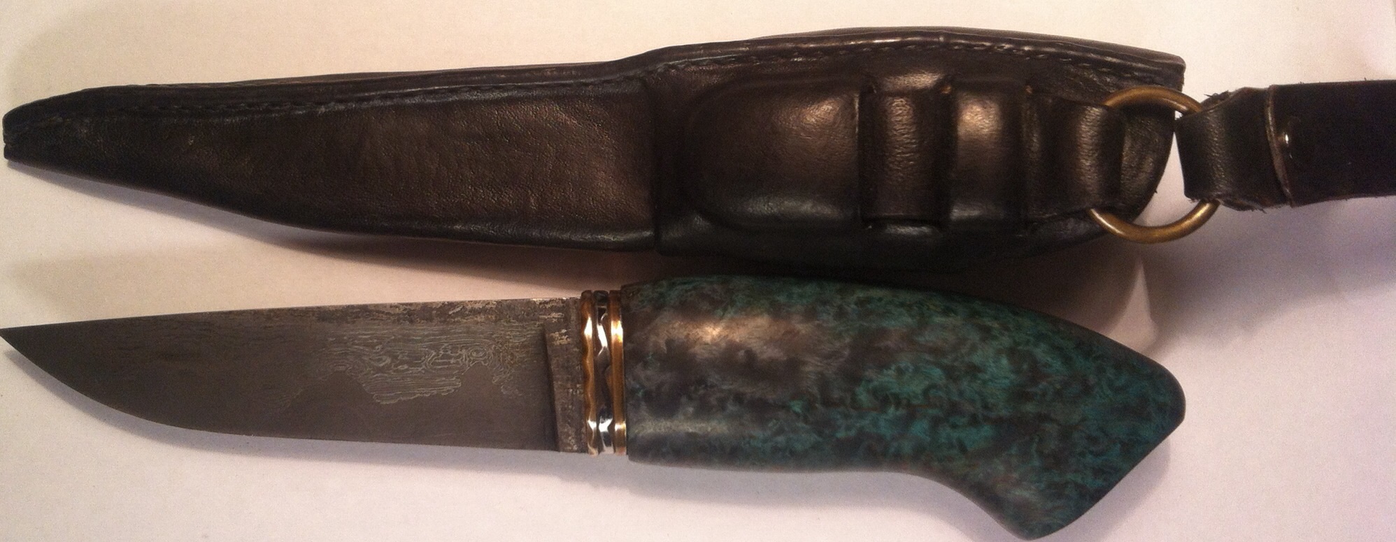 Рома, приветствую! Посмотрел на твои творения, прелесть! В рукоятке есть острый угол, чуть не удобно, но компенсируется дизайном. Качество видно, всё на высоте! А про ножны, просто нет слов, очень понравилась комбинация дерева с кожей, это грамотно! Думал, может попробую деревянную вставку во внутрь кожи загнать. Куча заготовок, куча задумок по выхлопу отчитаюсь. Смотрю я на данные творения в теме и сам себя спрашиваю про заданный здесь вопрос, а на самом деле, сколько будет стоить ручная, штучная работа мастера!? Если я тружусь по отделке квартир и в день у меня выходит 3000 - 5000 руб. в день. (Прошу не привязывать эти цифры и не выводить формулы.) То на подобную красоту в виде эксклюзивного топора у меня уйдёт 5 - 10 дней с вложением не только трудов, но и части души, для того, чтобы вещь радовала, что выгоднее?, трудиться на стройке или вкладывать душу!? Видел, что можно купить классный топор ручной работы, но поставленный мастером на поток и цены 8000 - 10000 - 15000. Если у мастера будет интерес, он будет творить, а если не будет, он сделает!