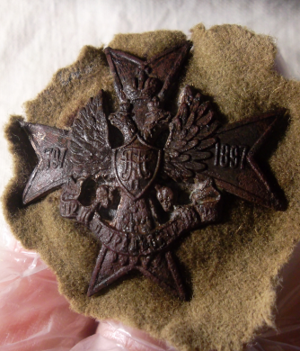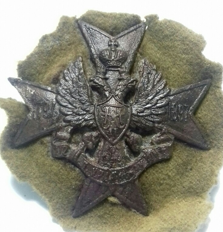 Утвержден 19 августа 1911 г. в память 100-летнего юбилея полка (17 мая 1897 г.). Знак представляет собой Мальтийский крест с юбилейными датами на горизонтальных концах: "1797 - 1897". В центре креста на груди черного двуглавого орла зеленый щит с золотыми вензелями Павла I и Николая II; в когтях орла золотая лента с надписью: "112 п. Уральский п.". Диам.- 47 мм. Сообщение отредактировано progresxp: Feb 10 2019, 11:35 |