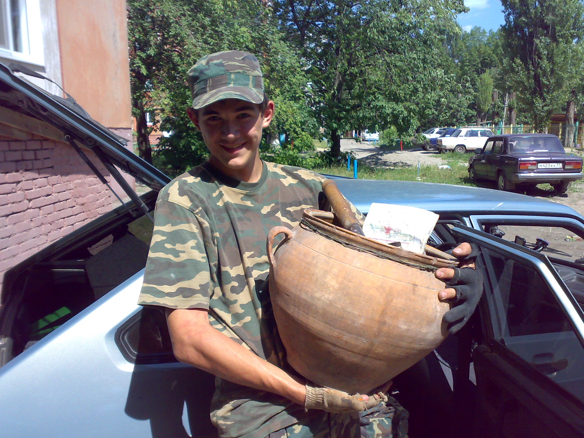 Ух Валерка- ну ты и сеятель..)Банка на банке)Но в целом неплохо покапали..)Еле разместил горшок в музее, чуть позже фотку выложат...