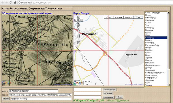 Наткнулся в сети на очень интересный ресурс, где современные карты уже совмещены со старинными трехверстовками. Для планшетника и ноотбука работает, с телефона не пробовал. <СМОТРЕТЬ>