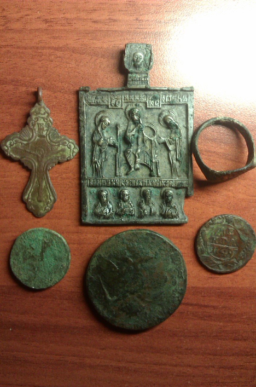QUOTE(gather @ Apr 18 2012, 08:17) Эд,где ладанка? Сегодня благодаря Гене(Гендос)мне посчастливилось вырваться на ночной коп.Результатом весьма остался доволен.Очень порадовала металлопластика.Из монет две деньги и пятачок 1765 ЕМ. Вложенные эскизы изображений -------------------- Русь в огне не сгорит и в воде не потонит-если Бога не забудет.