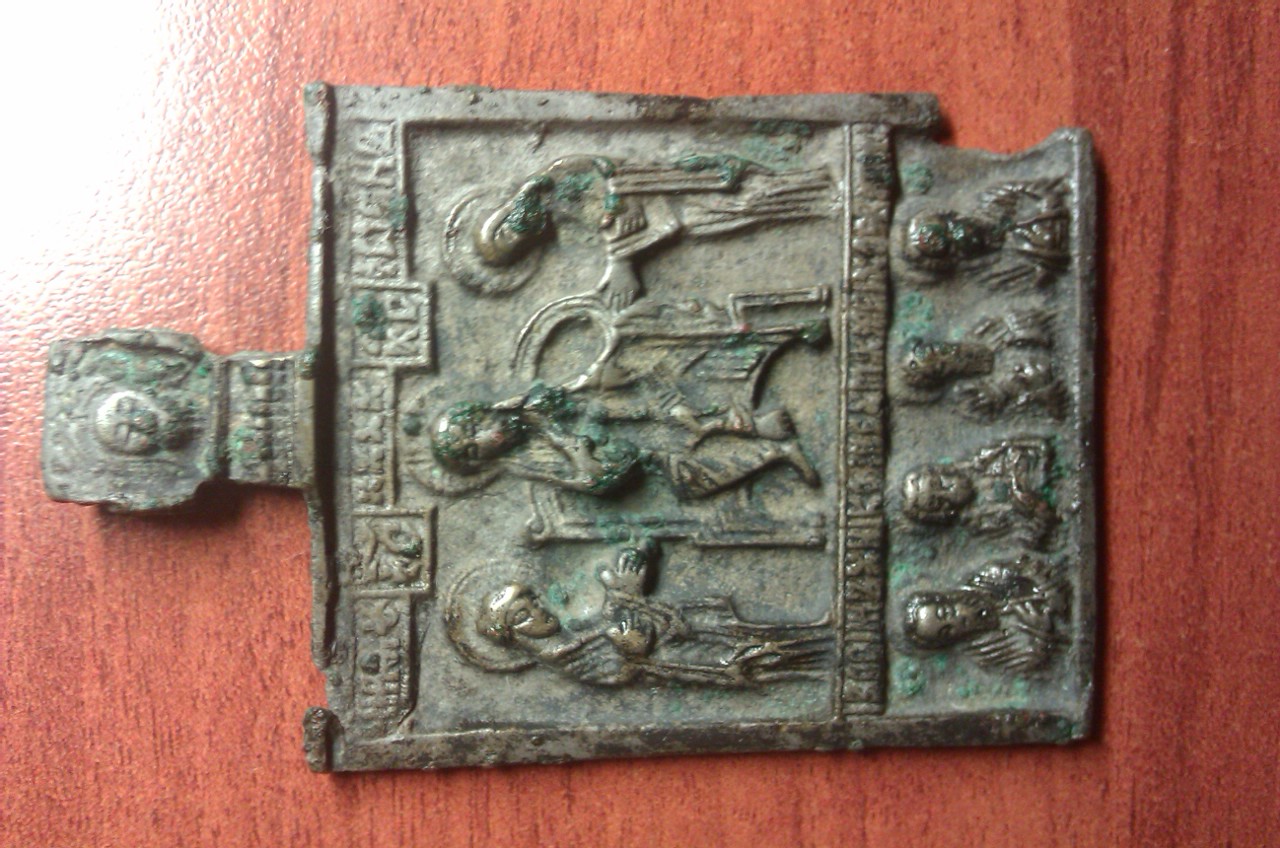 Ребята,подскажите пожалуйста по ладанке,что за сюжет изображон и к какой эпохе относиться?Размер 70*45 мм.