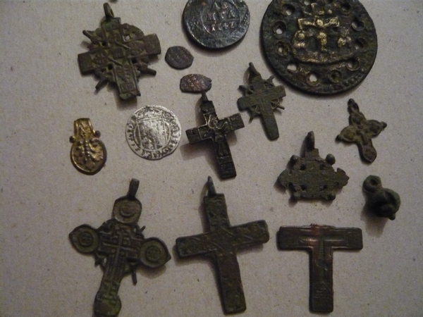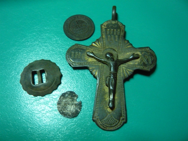 Ну,глядя на ваши сегодняшние находки,мои уже перехотелось выставлять..,аж стыдно... я так...вкратце..пятак большой...,пара советов...,трак от нашего танка с самодельным ключом от пальца,трехлопостной втульчатый наконечник из цветного металла, кило цветмета в виде гильз.. ну и кабаны,млин,которые достали сегодня полдня бегать вокруг меня...