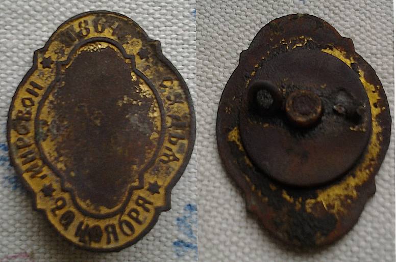 QUOTE(knife @ Sep 8 2012, 18:27) Вот такой значок сегодня с закруткой попался - примерно 20 мм в высоту. На фото цвет плохо передан, в центре, похоже, видны остатки позолоты. Помогите найти о нем какую нить информацию! жаль с утратами( кстати продавать не будете? Нагрудный знак "Мировой судья 20 ноября 1864 -------------------- Не Нам Не Нам А Имяни Твоему
