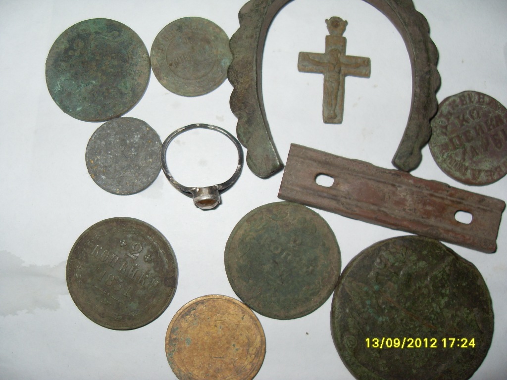 QUOTE(Гендос @ Sep 13 2012, 17:16) привет Всем!!!Вот и я наконец то вырвался на коп вчера и сегодня у знакомого на огороде....Результат.... 5 коп 1773года 2коп 1851года 2коп1812года 1коп1891года,1копейкаНиколая первого,копейка Петра,20 коп польские какие то,мёртвый пятак 1930 года,перстенёк серебрянный,вроде как подковка,не знаю и крестик..... Ну молодчина!А я думал ты коп уж совсем забыл.Хорошие находки!Поздравляю! -------------------- Русь в огне не сгорит и в воде не потонит-если Бога не забудет.