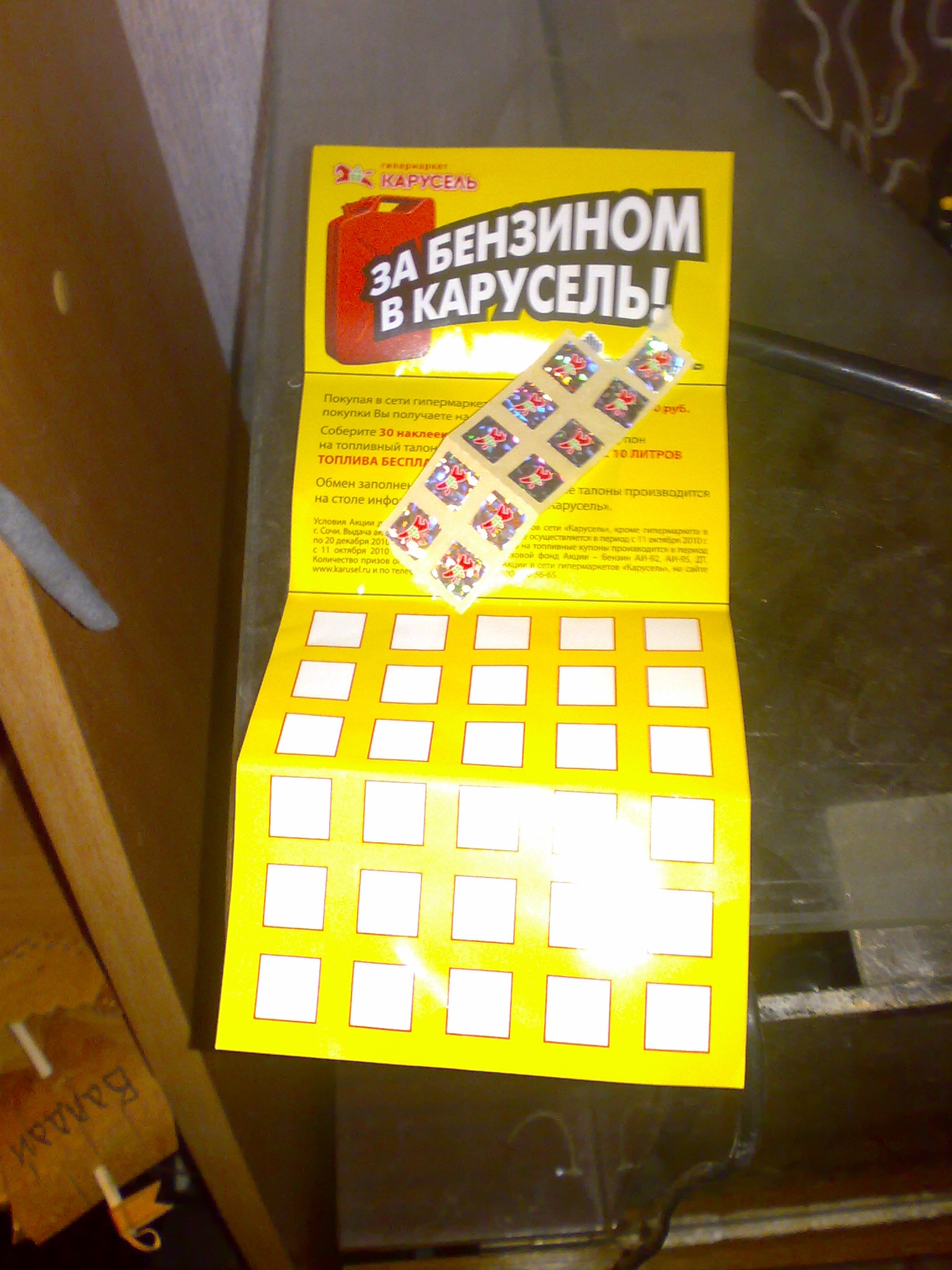 в карусели такая хрень..акция бензтн за купоны..у меня 11 шт есть..у кого еще есть давайте соберем 30 и бензин разделим