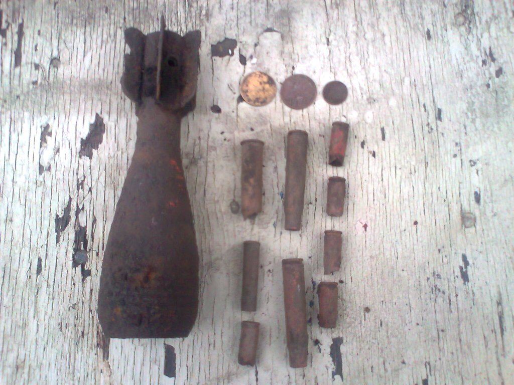 а вообще кто знает по этой хреновине? это от миномета? специально не копаю железных сигналов, эта штука видать пискнула ржавчиной, скорее всего зацепил именно хвостовую часть снаряда, копнул и эта штуковина вывернулась сбоку в ямку. сЦыкатно такие вещи из земли доставать, эта разряжена, носовая часть выручена была, опять таки кто и когда ее разряжал, да и зачем? поднял ее с глубины 10-12 см, в этом месте больше не копал, но по этому лесу по окраинам сплошные окопы и мелкий настрел, может и подобных игрушек не мало, но принципиально не копаю чернину.