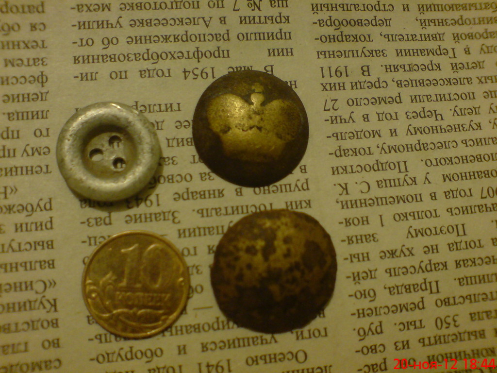 QUOTE(Хлебороб @ Nov 20 2012, 19:24) Хорошие поля да и крестик не частый ,везёт людям крестик наконечник QUOTE(mihr @ Nov 20 2012, 19:41) коллега есть немного пуг. 1. ганс пуговка с плащ палатки 2. шефских полков.с 1862 по 1904гг,а также;николаевского инжинерного училища,павловское военное училище,александровское военное училище. 3. 10 копеек образца 1997г по сегоднешний день 4.военная с 1829г частям принадлежала каким положено было иметь гладкие пуговицы. всё очень частое.кроме 10 копеек QUOTE(Shandr @ Nov 20 2012, 20:50) у меня сегодня день пуговиц не,не у тебя,а у меня QUOTE(Хлебороб @ Nov 20 2012, 19:57) Подскажите, часто в нашей местности встречаются такие пуги сельско хозяйственные учебные заведения. с области видел штуки 3,но всё увидеть не возможно. в моём районе помоему не одной не находили. Сообщение отредактировано VALL: Nov 20 2012, 19:58 -------------------- "Верить, в наше время, нельзя никому, даже себе. Мне - можно!" ©