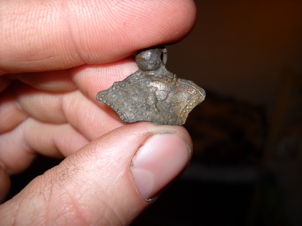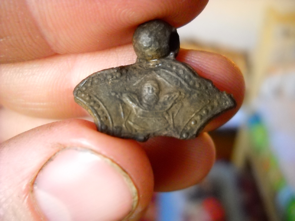 летом попалась такая приинтереснеснейшая штука, понятное дело что сломана и ценности нет, но длЯ себя просто интересно, что это было, крест? либо какаето другая висящая приблуда.. ушко цело... мужик там дюже хабарный и лощеный изображен, вот тем то и интересен это обломок... Вложенные эскизы изображений |