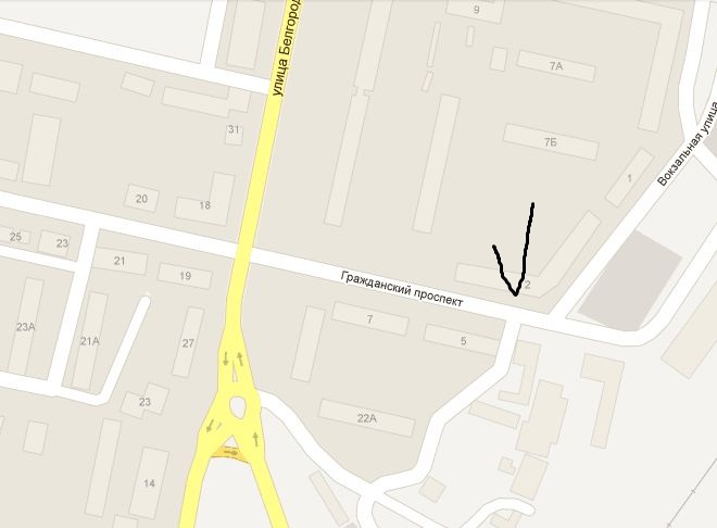 Если правильно понял - перекресток Гражданского пр. - ул. Белгородского полка (быв. Ленина - Кирова) ???
