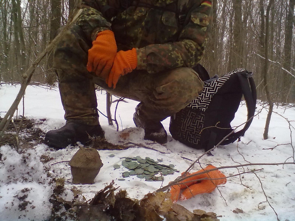 QUOTE(DIMAKA @ Jan 11 2014, 18:37) Только вернулся с лесных просторов.Прошлись с товарищем по добрым старым лесным тропам. Сегодня дед был добрым. Вот эту кучку монеток подбросил (14 пятачков) нашли в радиусе 4-х метров. Товарищ начал рыскать раньше - поэтому 10 монеток ушли к нему. Крестик- бесогон тоже его радость. Из моих пятачков интересен один - 1766, С-ПМ, хорошо видны следы перечекана из 10 коп. "барабанов". Второй крестик тоже поднял товарищ на прошлом копе. Интересует по обоим датировка. За фото - звыняйте. ![]() Олег не хило копнули Сообщение отредактировано Miwka: Jan 11 2014, 18:19 -------------------- Не будите спящего медведя...