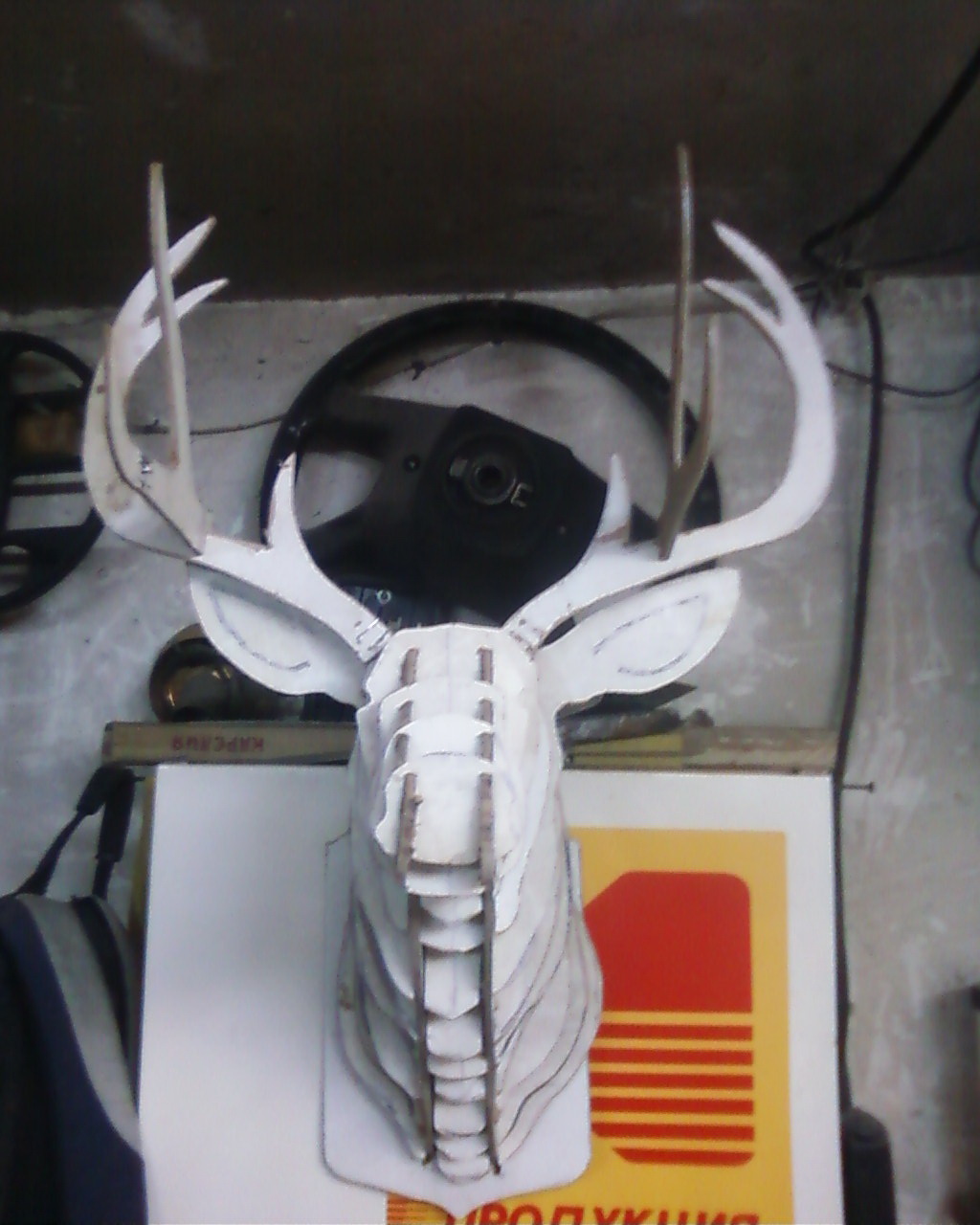 Сегодня от безделья и мороза делал макет головы оленя. Черновой вариант из двп.