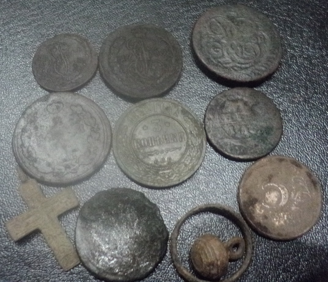 Сегодняшний улов. 3 копейки 1892 в сохране и копейка 1789 красавица, чуть похуже 1766. Ещё 5 рублей в сохране