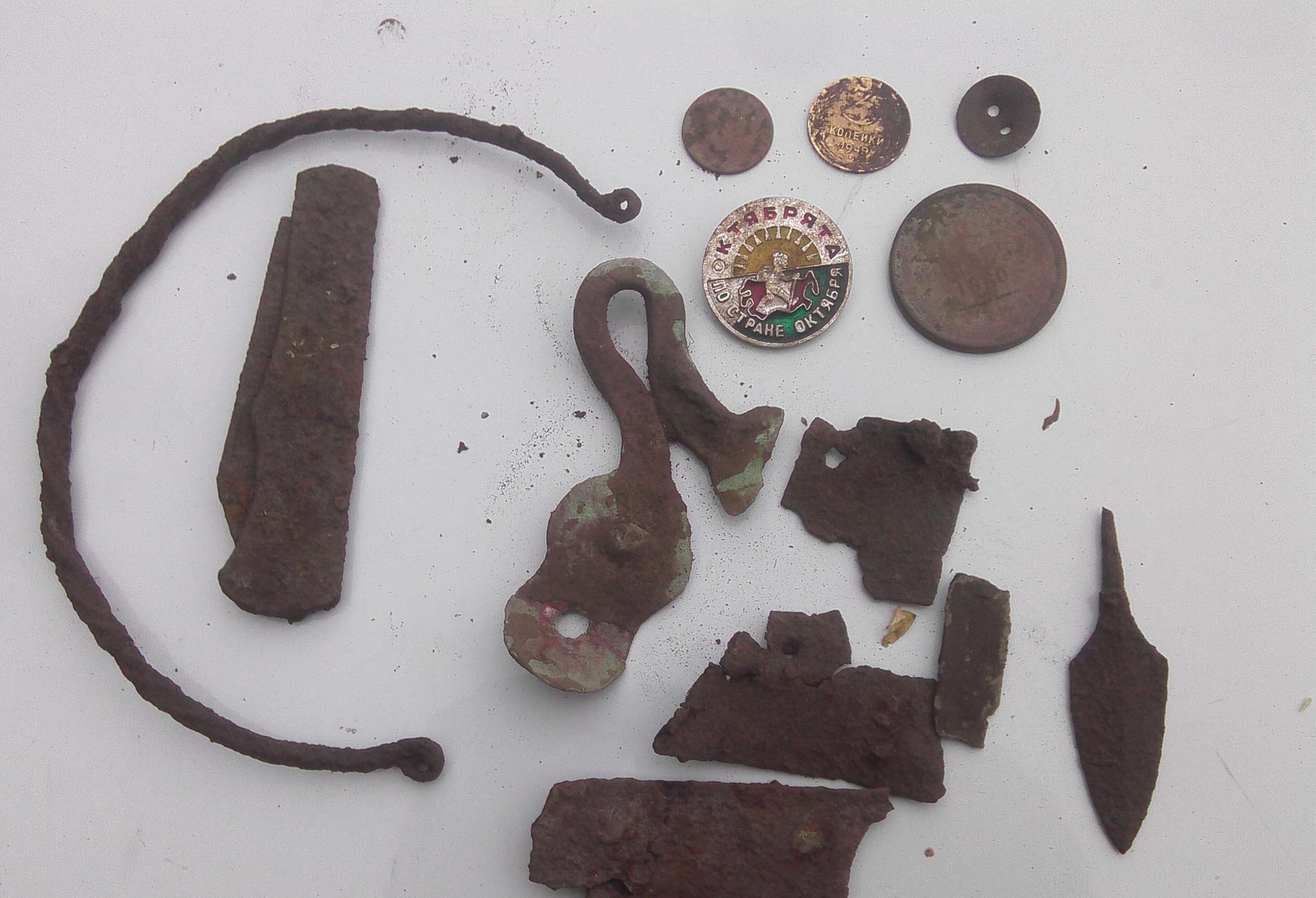 QUOTE(LICC @ Aug 18 2014, 13:01) вот и я по возвращению с коммандировки немного побродил по лесочку, и одна из полянок приподнесла такие находки.. Медная проушина была вместе с остатками железа с заклепуами, возможно котелок или чайник. Шейную гривну витую с небольшой глубины зацепил. А вот пятак на пределе чуйки с более штыка выцепил.. Земля сухая в трещинах, и это в лесу.. QUOTE(Гуливер @ Aug 18 2014, 14:46) Добрый день коллеги,вот и мы вчера к дедушке в гости зашли Что сказать, молодцы парни! Тоже надеюсь что найду креставичёк! -------------------- Внимание!