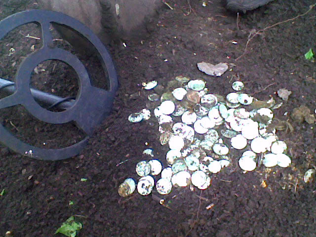 Ничего особо примечательного не находили, монетки, крестики, хлам всякий, а все клады на месте, вас ждут. Жгите! Удача любит трудолюбивых!