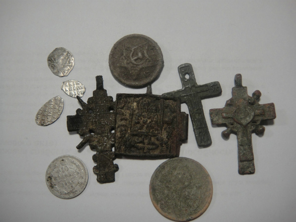 А зачем ручку от мебели заливать свинцом и делать железную петлю для подвеса??? Хотя мож пацаны переделали ручку в кистень. Свинец сильно окислен, с виду не одну сотню лет в лесу пролежал...