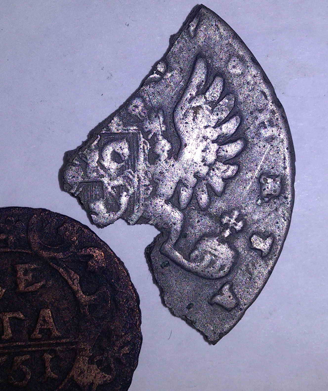 QUOTE(Kopatuch @ Apr 19 2015, 12:39) Подскажите пожалуйста обломок чего это может быть? Для монеты как то тонкая наверное... Тут два варианта: или подделка в ущерб обращению или отлили для дукача или монисто. |