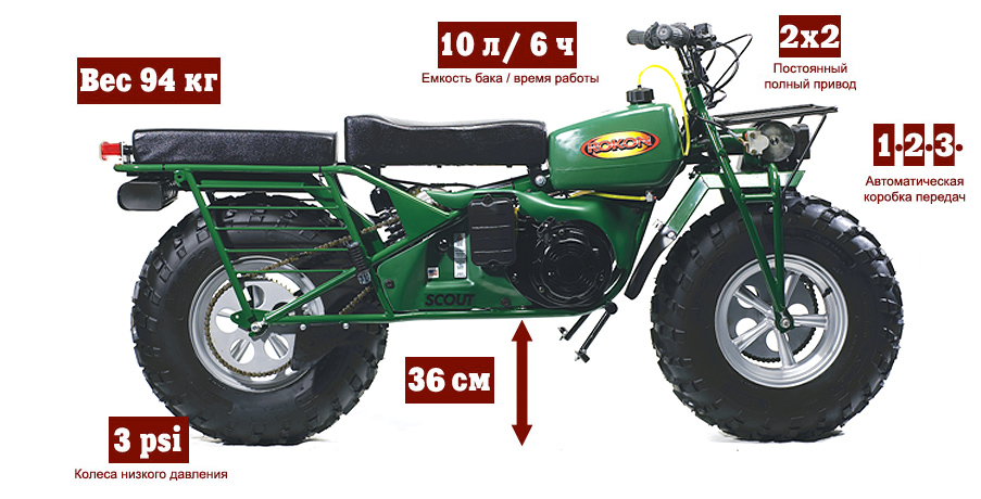 А мне жутко понравился мотоцикл-вездеход! Полный привод, КапалычЪ , зацени! http://www.rokon2x2.ru/scout_photo.html