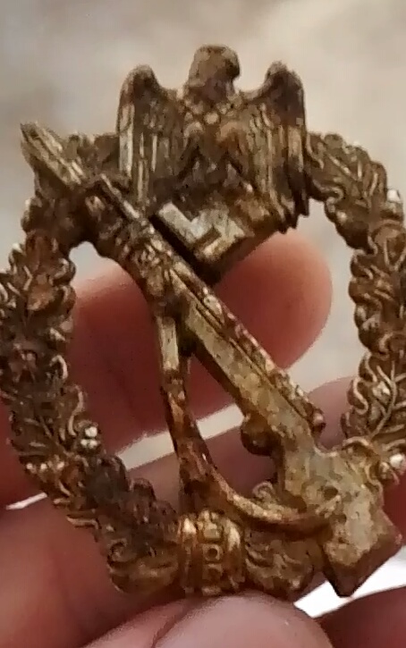 Спасибо за плюсики! Жаль что алюминивый толком не почистить. Вместе с ним лежал еще один значек вообще железный весь в пупырышках ржавчины, овальный в центре каска немецкая просматривается, вд 40 залил может что еще проявится.