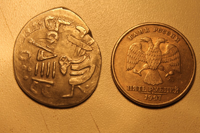 QUOTE(Белгород_поиск @ Apr 12 2017, 19:22) А что это? От куда такое чудо? Видимо из Китая, а может и у нас рукоблудов достаточно... Какое-то современное творчество-фантазия... не похоже ни на что... одна сторона (птичка) пародирует полушку Грозного, вторая - денгу новгородку... а размер то а размер вердикт- тока на брилок -------------------- копаем братья!