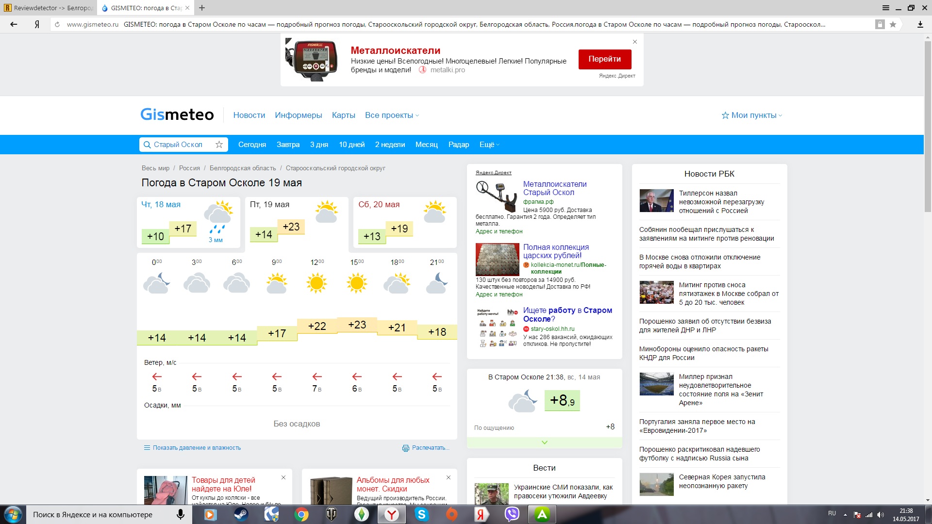 QUOTE(tirk @ May 14 2017, 20:03) Когда такие перепады через неделю прогнозируют - как правило не сбывается. Вероятнее всего прогноз в ближайшее время изменится да блин потерпите до среды -------------------- копаем братья!