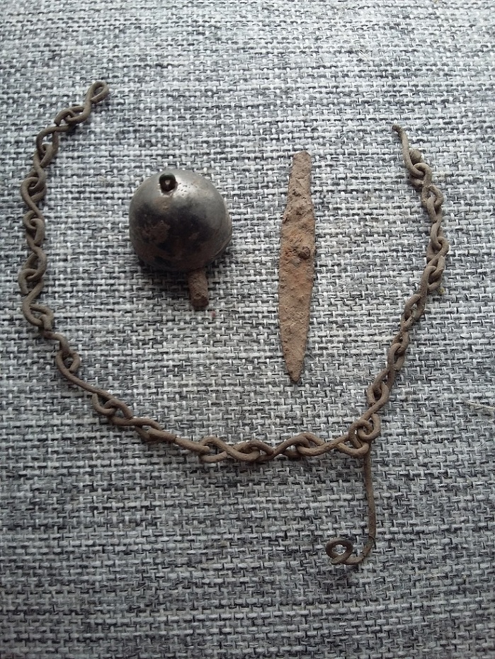 Они в основном парные и попадаются,не раз дед подкидывал,сейчас скину цепь на которой они крепились предположительно и колокольчик с ножом на ней еще висели