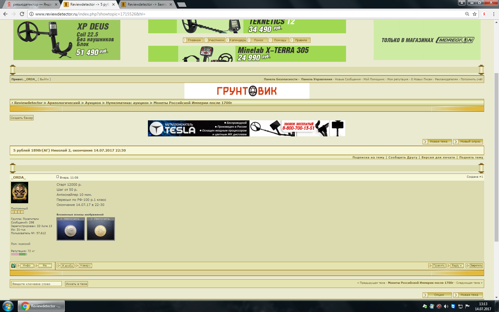 Профи ![]() ![]() ![]() ![]() ![]() ![]() Группа: Посетители Сообщений: 2,703 Зарегистрирован: 12-March 12 Из: маде ин RUS Пользователь №: 40,708 Металлоискатель: DEUS Пол: мужской Репутация: 1098 кг |
