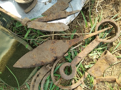 добавлю еще фото.вопрос- пуга с якорем кригсмарине? и прикольная ложка-вилка в виде черпачка. на фото еще есть мутотень с тремя отверстиями мне думается это напалечник для стрельбы из лука