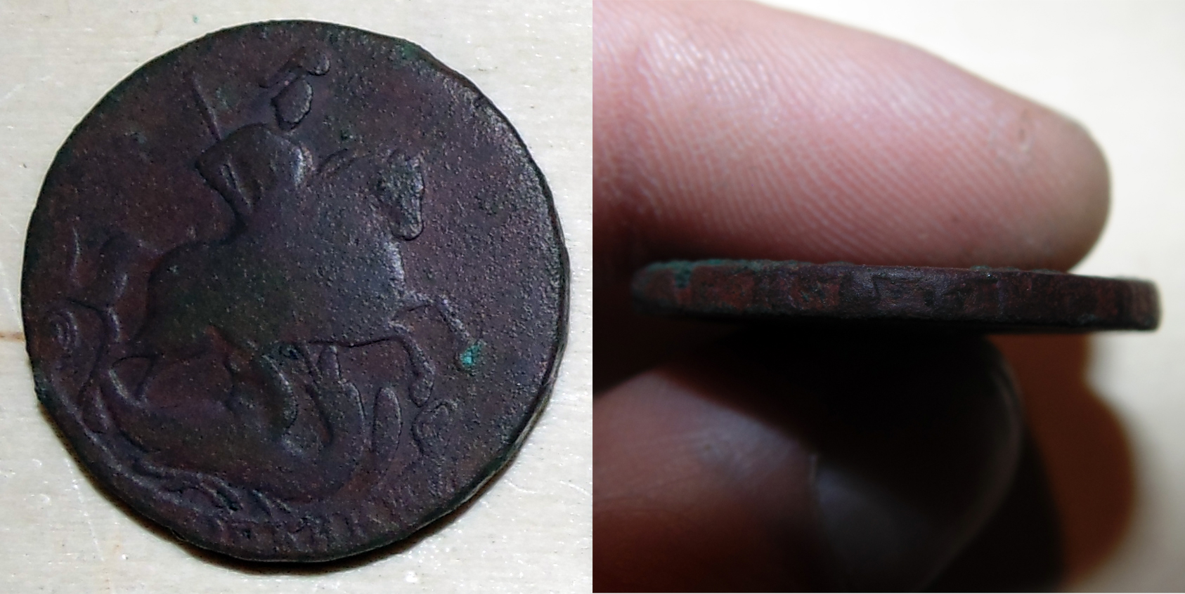 Ребят, чуть почистил свою двушку с конем, а там на гурте надпись: "ЕКАТЕРИНЕНСКИЙ ДВОР" кажись. Слово "ЕКАТЕРИН" хорошо читается. Дальше с трудом разобрал, может ошибаюсь. Бандероль снизу под конем, года пока не видно, откисает в мыле. Подскажите, что за монета такая?