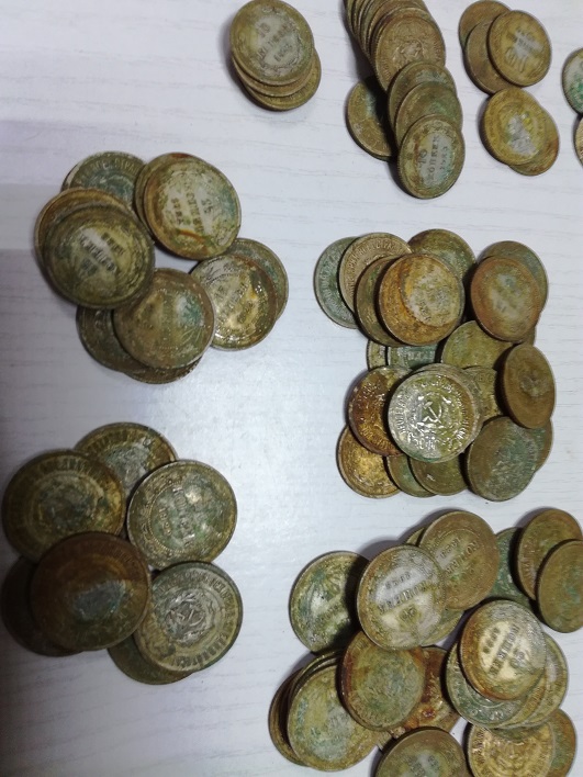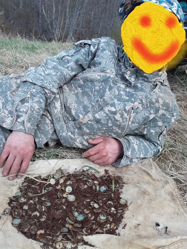 История банальна,как у многих других, отметившихся в этом разделе. Весна,вторая или третья неделя копа,очередная битая перебитая деревушка,силы на исходе,находок кот наплакал,монет по пять наверное. Решаем отдохнуть и ехать дальше. Подходя к машине, видим в метрах пяти от неё крутится трактор,подошли разговорились. Выяснилось, хозяин поля решил расширить угодья под покос,растолкав фундаменты трактором.С его согласия,мы решили походить за трактором,попутно помогая ему собирать металл ,надо сказать железа было прилично. В общем после очередного прохода трактора за ним потянулся шлейф из монет К нашему большому удивлению, хозяин поля и его работники не придали происходящему ни какого значения Спустя, наверно, пол часа после их отъезда мы нашли ядро закладухи. Выгр###### монеты горстями,удовольствие,скажу я Вам, не описуемое В итоге около 800 монет, ну плюс минус пару штук. Года от 1921 по 1930 (10,15,20к и один полтинник) Поделили с товарищем всё пополам. Монеты не мыл, не чистил,это удовольствие оставлю будущему владельцу. В общем то всё,Всем удачи!!! PS Хозяину поля и трактористу мы в этот же вечер привезли по коробке конфет и по бутылке хорошего коньяка,они всё приняли, но сказали ,что не пьют С уважением. Вложенные эскизы изображений |