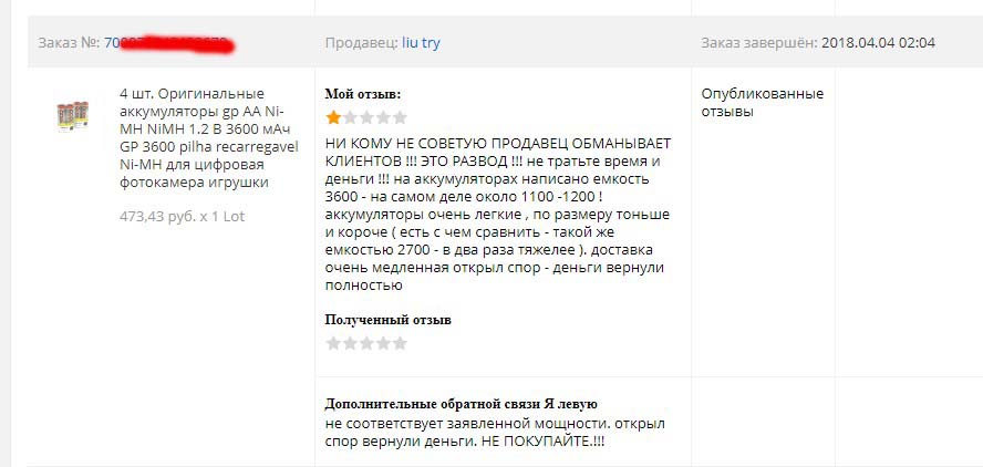 QUOTE(DYD @ Mar 19 2019, 21:18) Покупал такие 2400ма по весу тяжёленькие,новые заряда на 705 терре хватало на пару дней часов по 7-8 в сутки,к концу сезона начали сдыхать, заряд после 5-7 часов копа.Так что решайте брать,али нет. вы у этого продавца брали? https://www.aliexpress.com/item/4pcs-lot-Or....29623c00cbWng4 у него 5500 тысяч продаж все положительные отзывы я как сказал на моей тёрке 5 дней работы зарядник ещё может плохой у меня фирменный показывает ёмкость акума и три режима заряда |