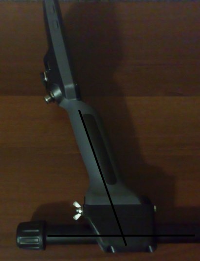 Пока есть время, надумал при помощи данного узла изменить еще и угол наклона ручки на 15 градусов, т.е. сделать как у Сешки, 55 градусов, а не 70 градусов, как сейчас.