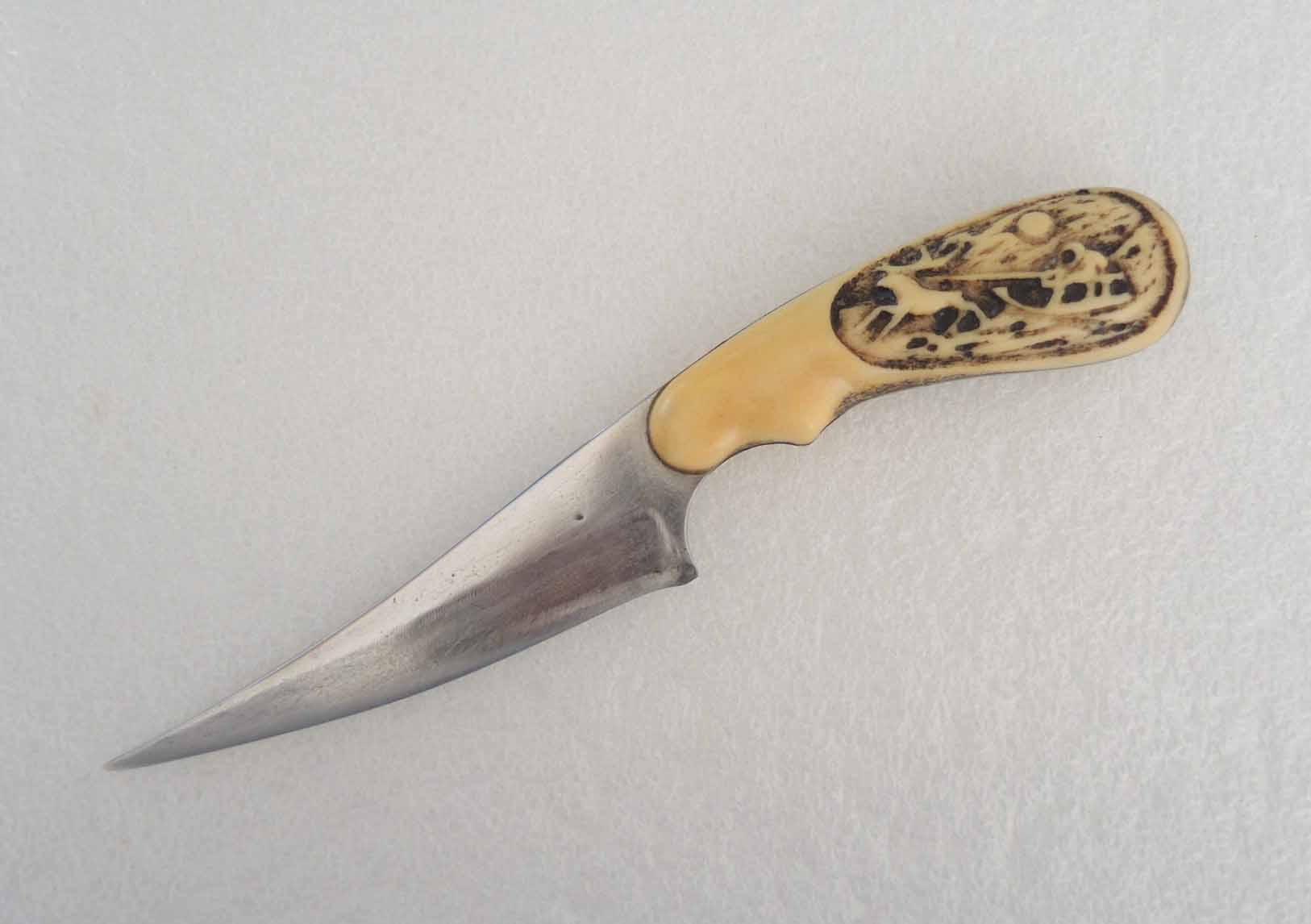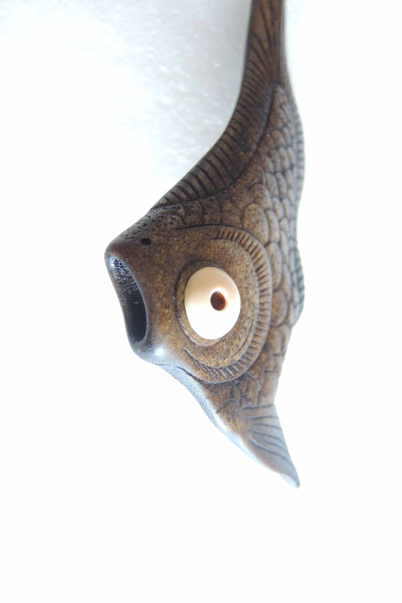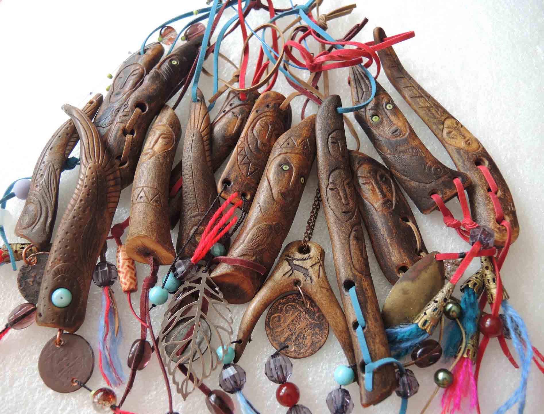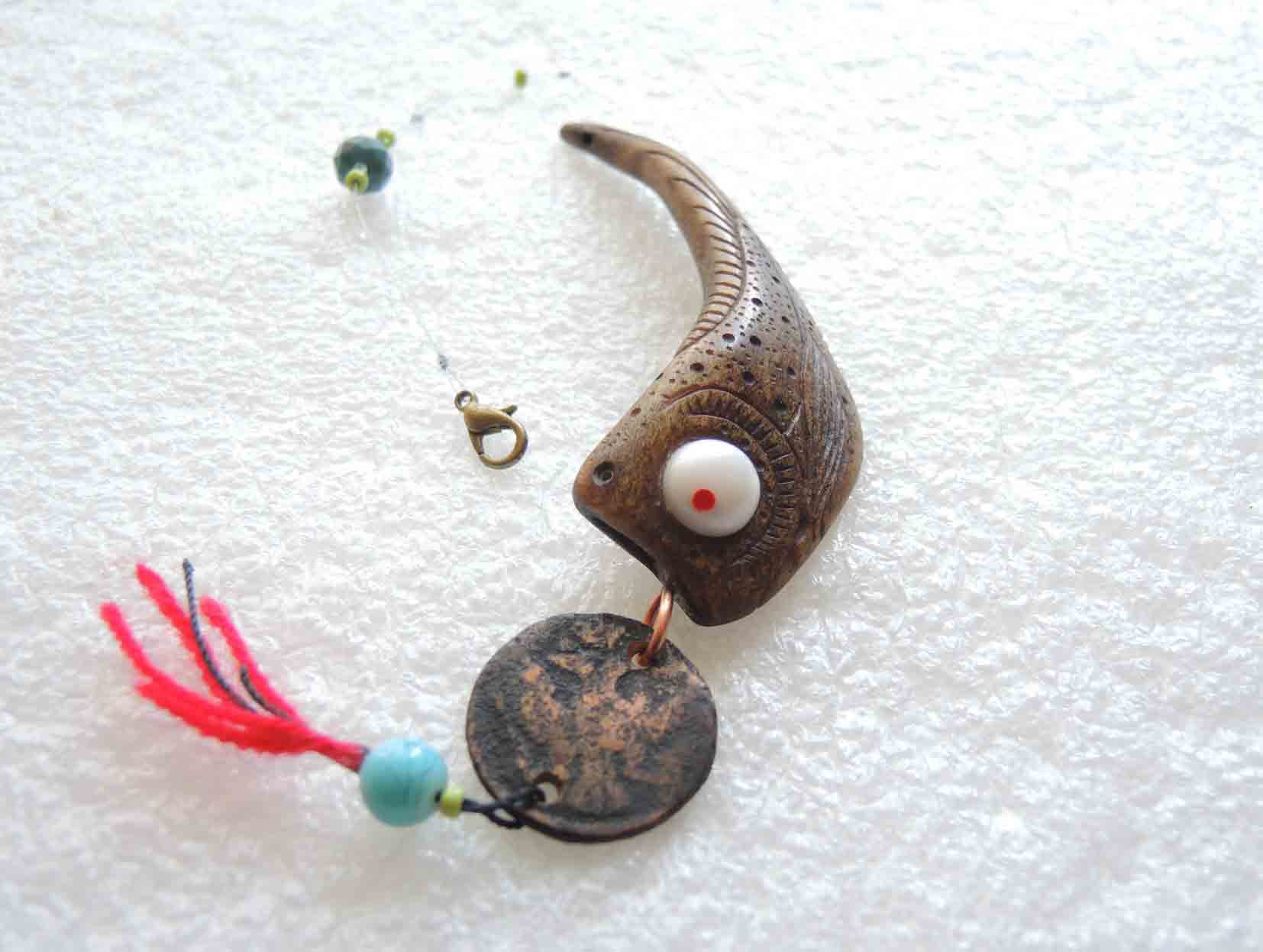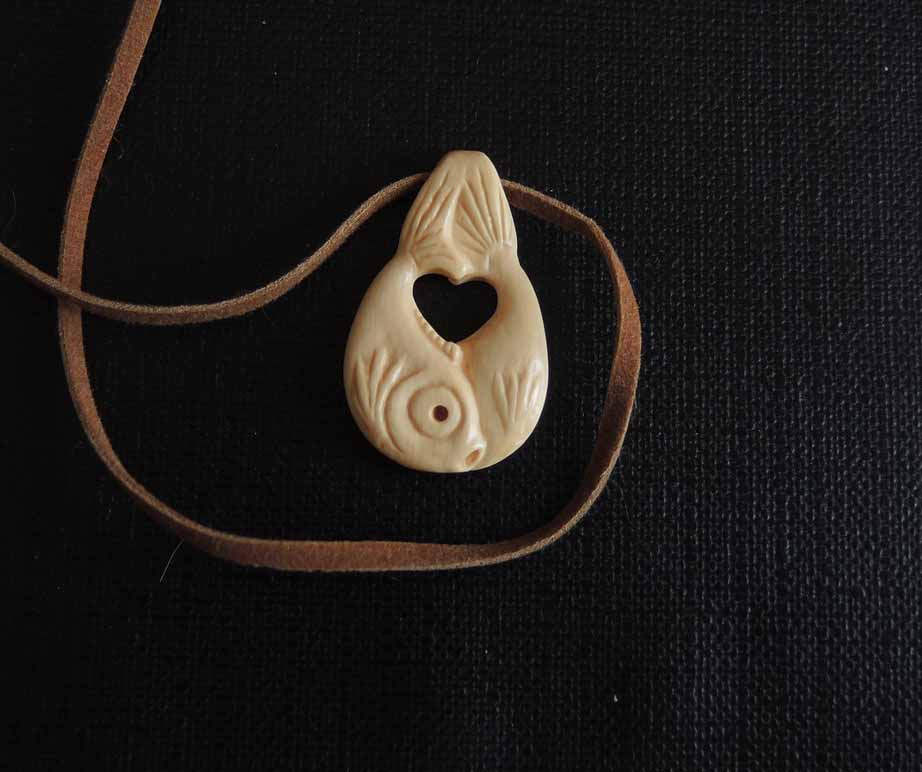 - но с этой композицией всё случайно вышло: сначала лежал себе кусок рога, можно было ручку для ножа, но - толстовата и при этой толщине надо бы подлиннее тогда. Ну а потом клинок соответствующий, я же не Макаренков, всяких таких заготовок и приспособ у меня нет, да и вообще как бы не совсем мой профиль, хотя, в своё время изготовлением ножей как-бы увлекался. Ну вот. Резать на куски - ну и что это будет - всё равно толсто дело и на брелок и на украшение. Хотя... можно разве что брелок брутальный - жалко такой редкий для северного нанего оленя расчленять. Короче, начал скыркать - а там уж видно, что получится, это типа шаловливые ручки покоя не давали. Ну а вышла рыбина, плавник укорачивать не стал, из разряда брелков с таким зацепом поделка выпадала, получилась. Пришлось делать двухстороннюю, вторую сторону вырезал немного другой, затонировал ... ну не акимоно же - надо чего нибудь впереди в виде как-бы цели сделать. Порылся в огрызках бивня, нашёл такой вот хорошего качества, но скажем так - тонкий, мм 7, наверное с коркой. Снял лишнее - стало тоньше- это и определило размер жучка. Ты ж понимаешь, что если всё по уму и был объёмный кусочек материала, то лапки бы задние надо было подсвесить, да и боковые, чтобы он висел на крылышках. По при заданной толщине этого не получалось, в общем, вышло то, что вышло Займусь на досуге дожимом фоток, были ещё и с панно и с этой поделкой в подвешенном виде. Дырка сзади осталась для антуражу |