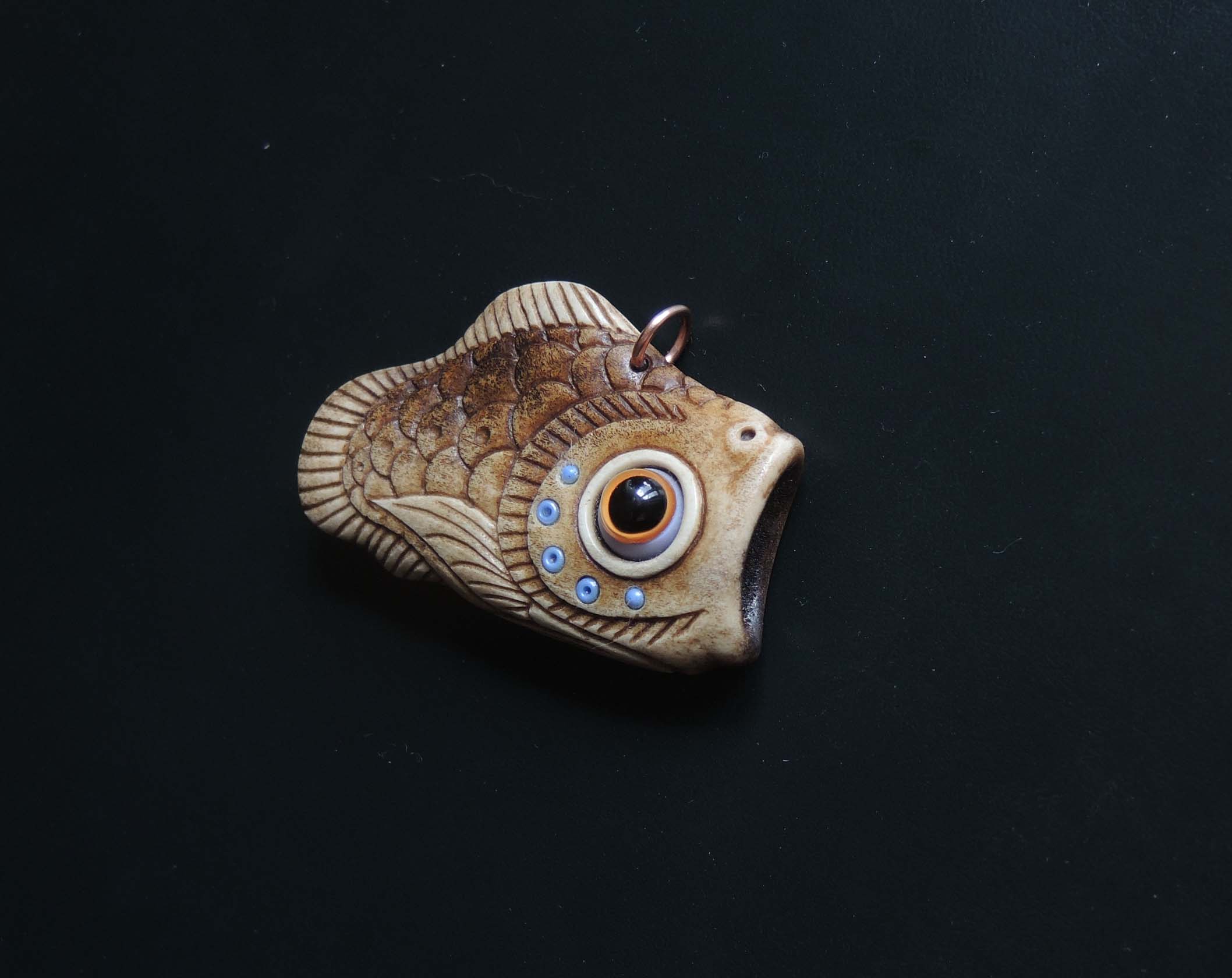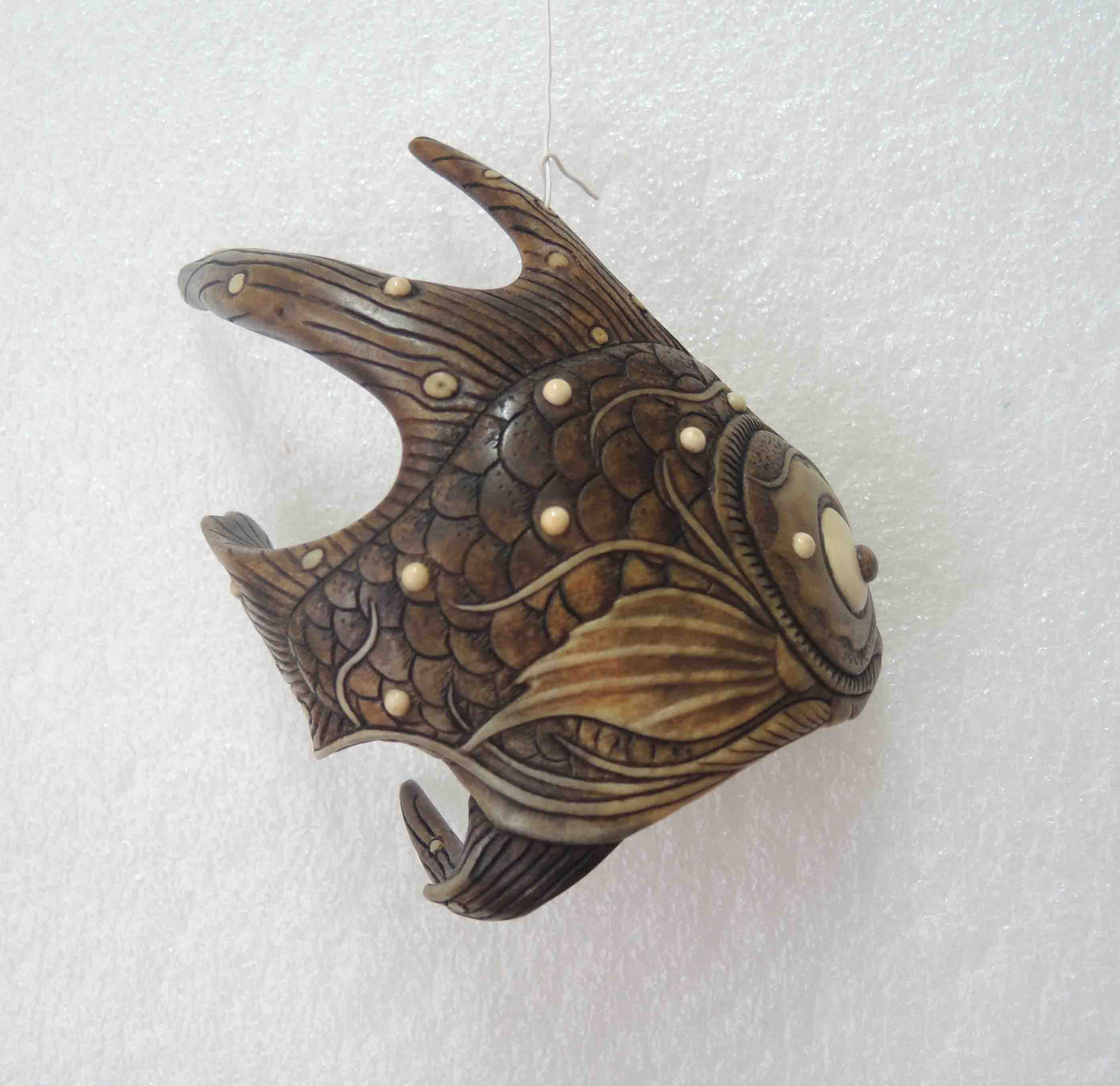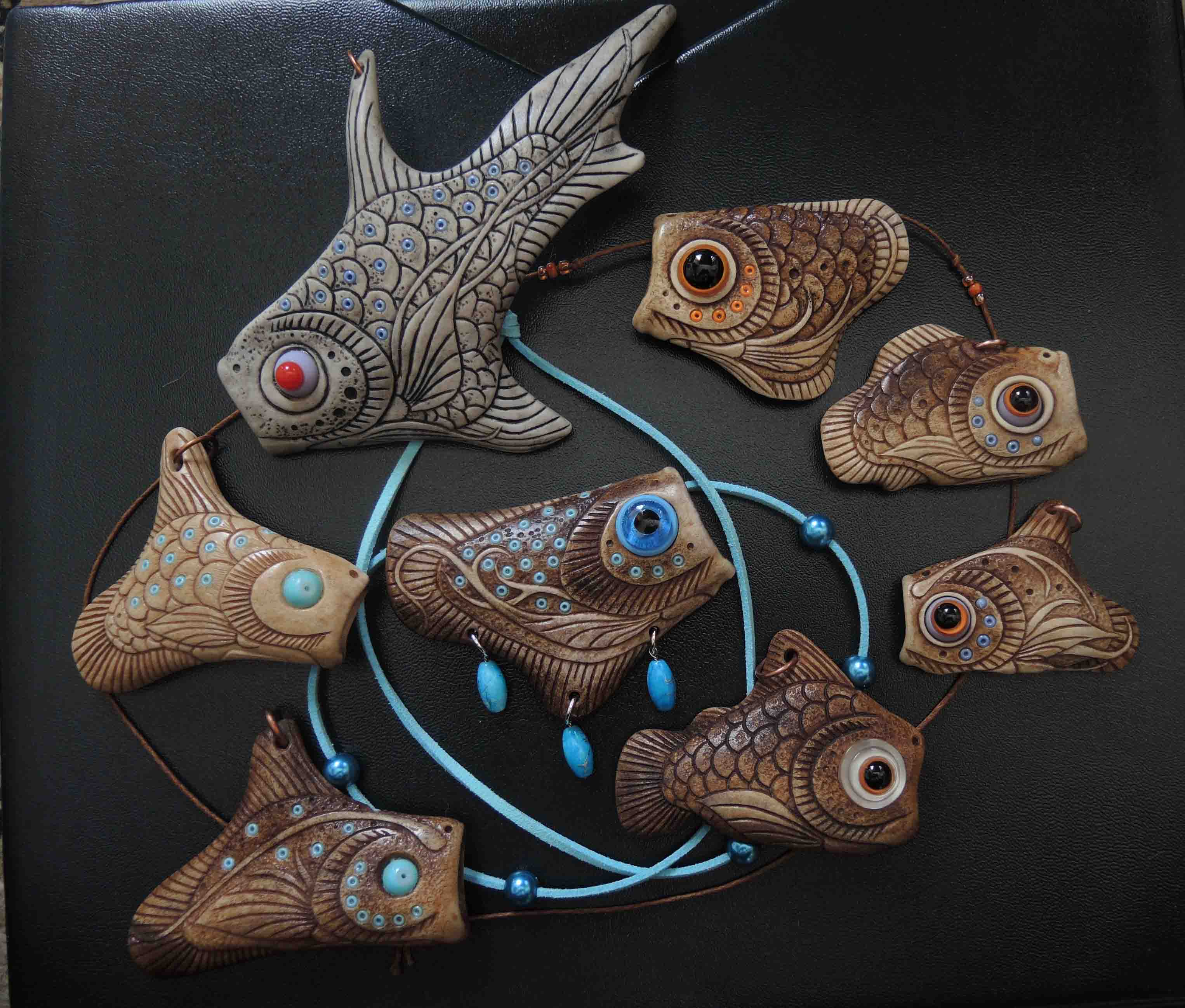 Очень понравились светлые рыбы, которые без обработки марганцовкой. Лица очень хорошие (бусины пластиковые их не достойны совершенно). И большие работы очень интересные (три рыбы и краб, например).