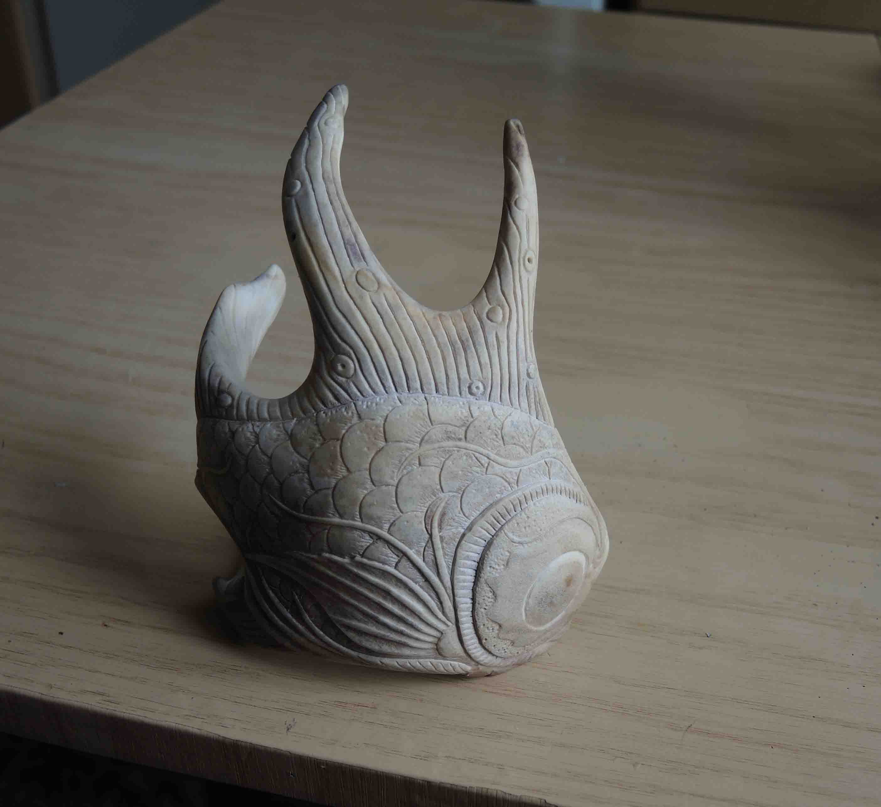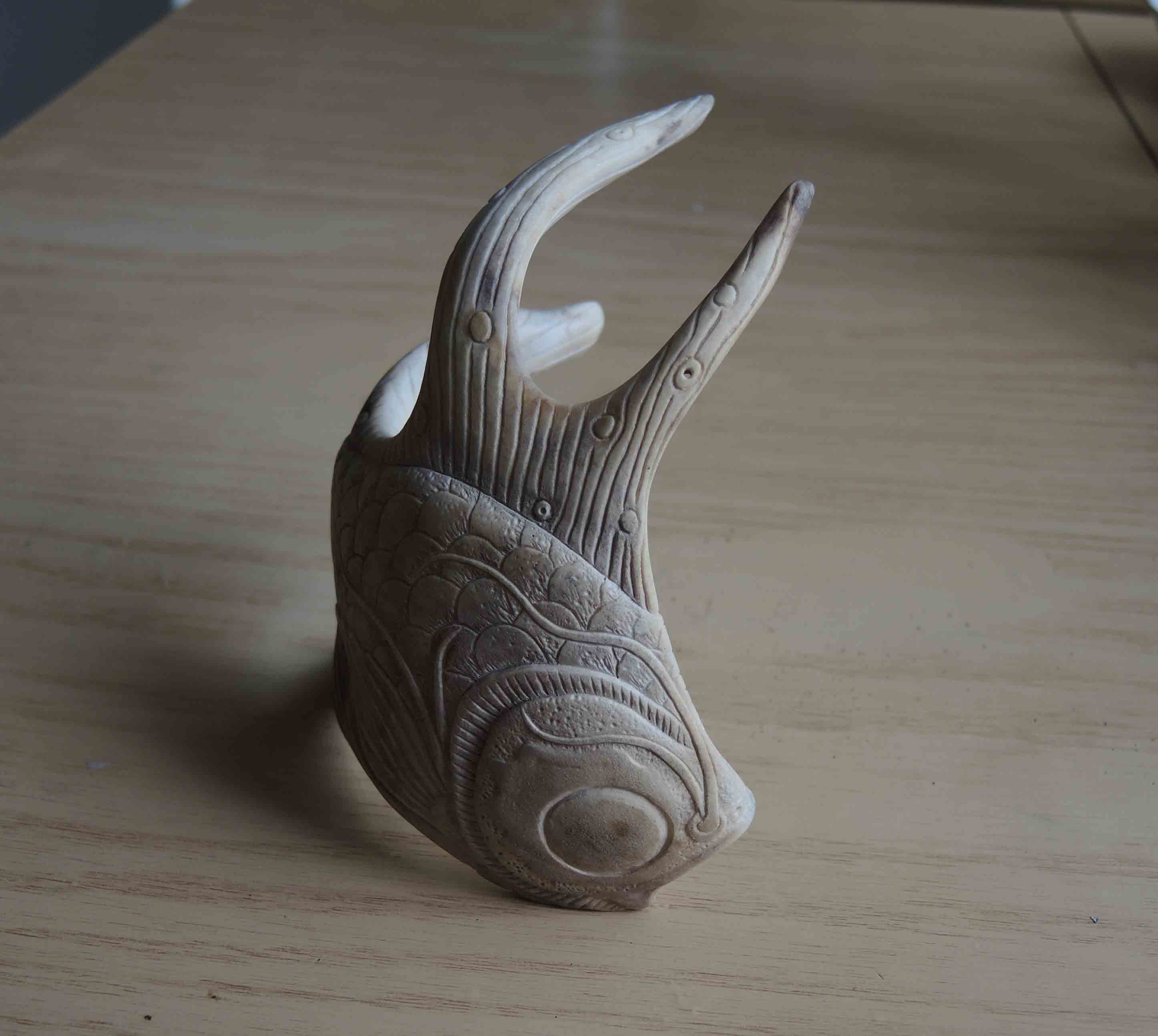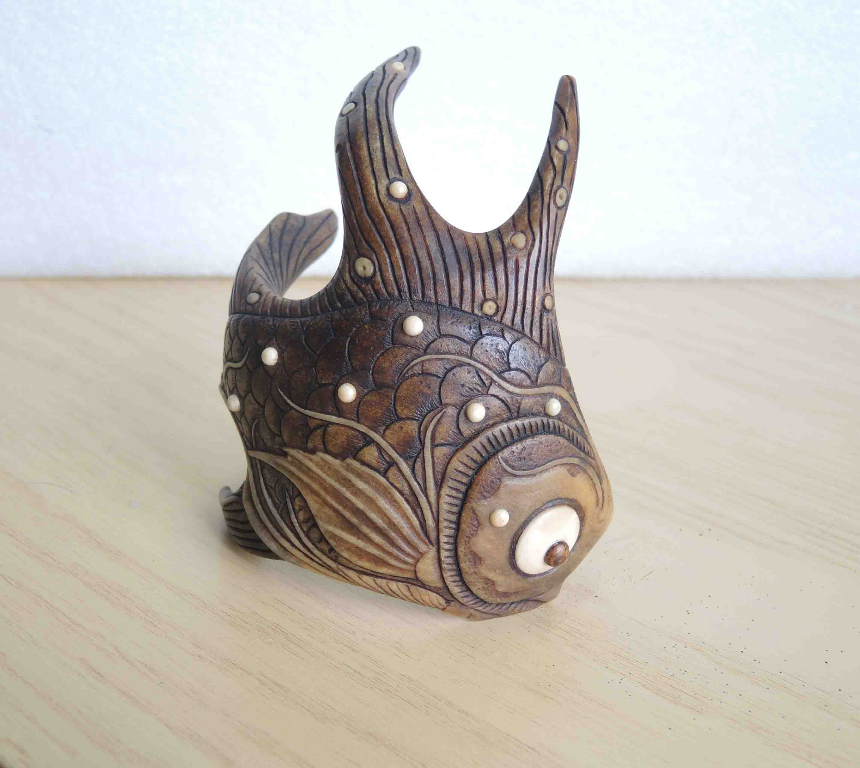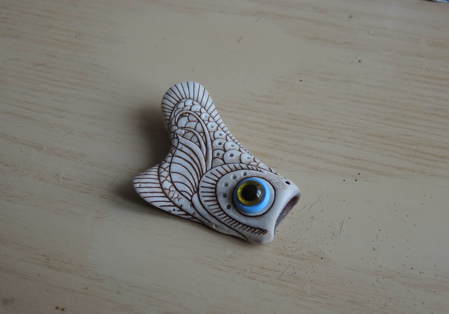 Очень понравились светлые рыбы, которые без обработки марганцовкой. Лица очень хорошие (бусины пластиковые их не достойны совершенно). И большие работы очень интересные (три рыбы и краб, например).