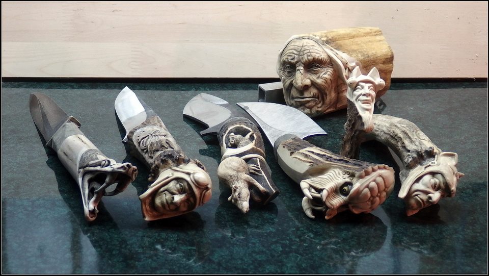 А ручки к ножам..его,хоть и неплохо сделаны(чаще всего-с мордами орлиными),но не радуют глаз..И серебряная фурнитура сделана грубо и ужасно неряшливо.Видали и получще.. Так что,твоя скромность,и ссылки на него,считаю излишними.Самобытная сюровость твоих рыб..всё одно..дают гораздо лучший визуальный эффект..Особо для тех,кто в теме.Ну,и..конечно,на покупцов потенциальных,но-со вкусом. Как пример реальной самобытности,прикреплю немного фоток одного талантливого резчика(скульптора),чтобы тема Макаренкова-учителя-подражателя..боле не всплывала. Надеюсь-ты не будешь против.Он тоже мастер ручек к ножам и топорам(и не только,есть и произведения..шикарные,крупных форм).Я был сражён наповал..когда увидел в первый раз.Тоже лось,и обыгрОвка комеля лосиного. Вот на него,думаю..стОит равняться,и пытаться подражать. Вложенные эскизы изображений -------------------- Прежний аккаунт С-правый(репа 36 кг).Более ранний аккаунт,с 2011 года,ник СергейN(176 кг.репа).
