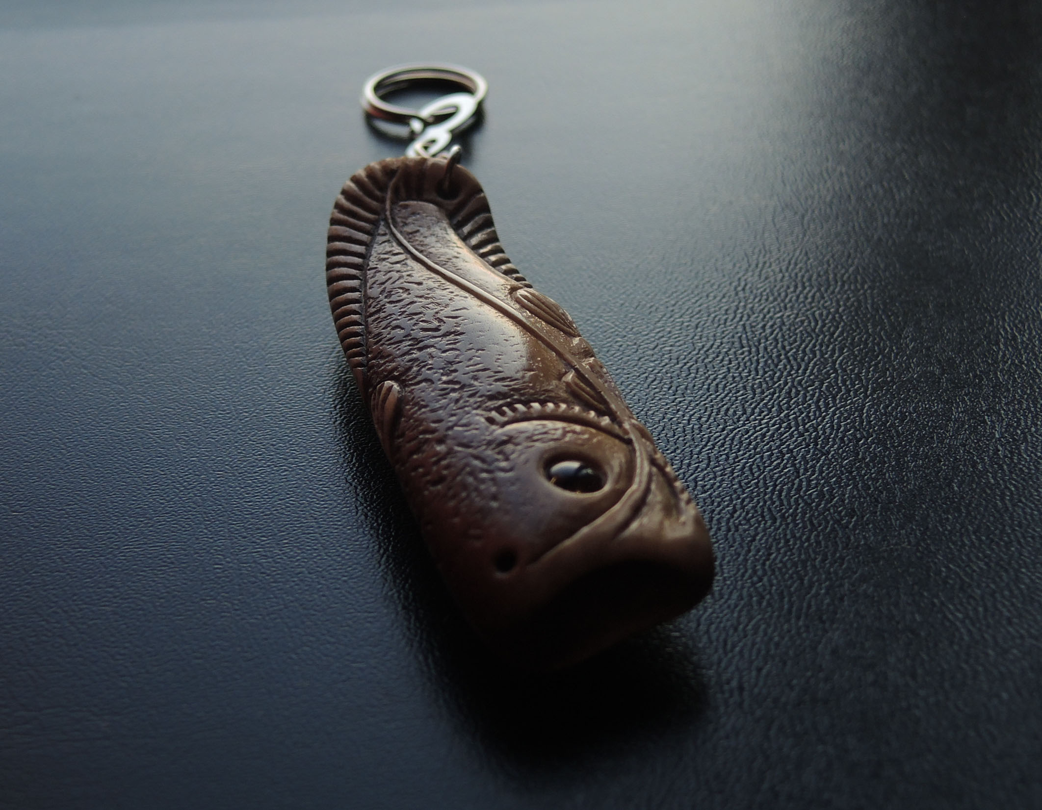 .. ну если так прикинуть к примеру по первому брелку то...часа 2-2,5 сама резьба и покраска. Потом краска сохнет дня 2, затем вклеить глаз, эпоксидка ещё с полдня сохнет, потом кольцо-цепочка. В общем, за день неспешно штуки 3 делал, окончательно они были готовы, получается, дня через 3. С другими дольше, там основное время уходит на полимеризацию льнянки |