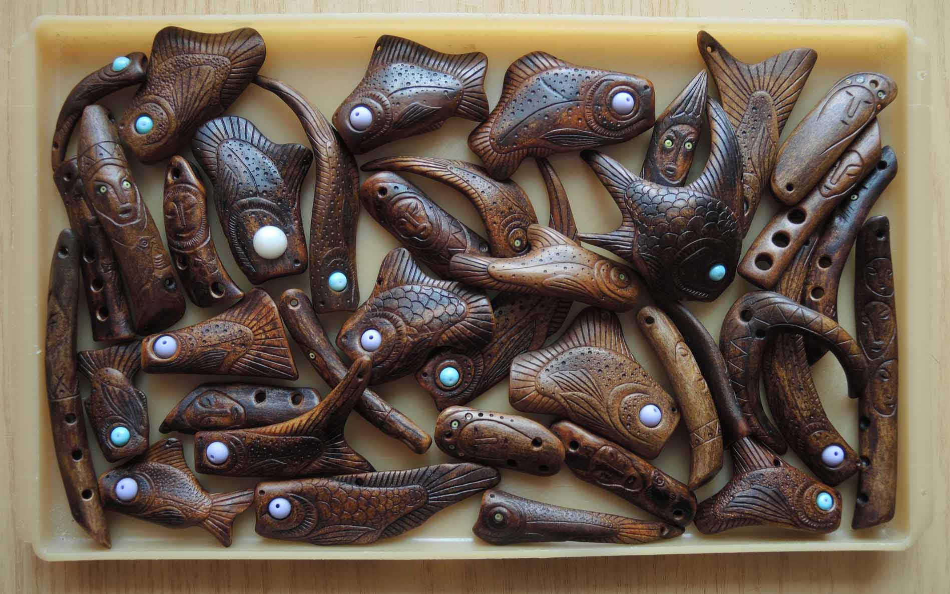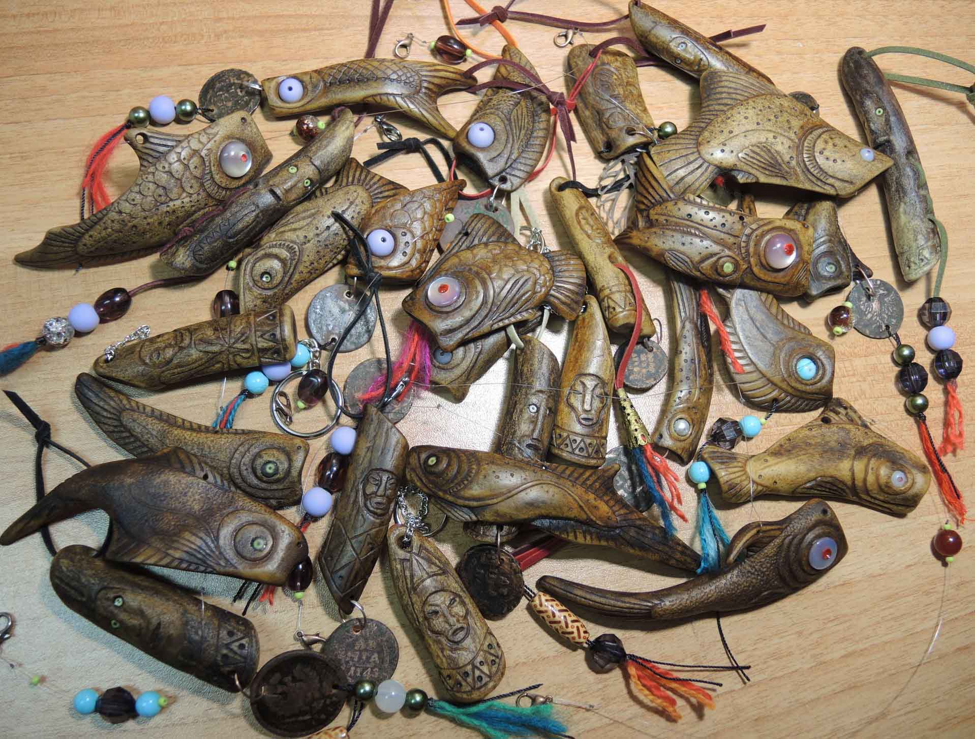 отдохнём от откровенного (пусть и эксклюзивного) ширпотреба, созерцая обрезки бивня мамонта и поделки из него - нас тоже когда-то почти случайно свела судьба, это всё - из найденного за годы тур походов и сплавов по отдалённым рекам Полярного Урала.