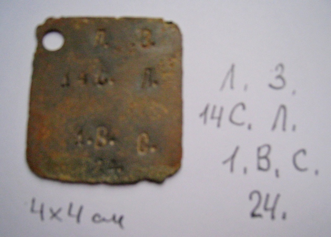 ![]() 1.кадровая рота 31/ какого то/ запасного батальона. 2. 1 штабная рота 512 пехотного/какого то/запасного батальона. 3. 12 рота 309 пехотно полка /208 пехотная дивизия/ не выданный,не пробита группа крови. Помогите расшифровать недостающие буквы,да и все ли правильно.Оценить. Всем заранее большое спасибо. PS.Найдены в радиусе 200метров,почти рядом. -------------------- Холодное блюдо подается горячим.