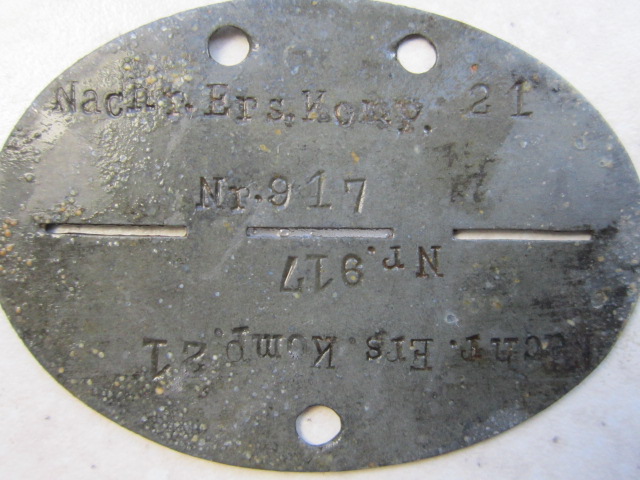 QUOTE(zabann @ Oct 25 2021, 12:30) прошу помощи в расшифровки и оценки пару + половинка жетона, один цинковый,второй алюминиевый с утратами ,на фото все показано,с увж Nachrichten Ersatz Kompanie/Infanterie-Ersatz-Regiment 21 Запасная рота связи 21-го запасного пехотного полка https://www.lexikon-...fErsRgt21-R.htm Stab/Infanterie-Regiment 463 Штаб 463-го пехотного полка 263. Infanterie-Division https://www.lexikon-...enter/IR463.htm QUOTE(zabann @ Oct 25 2021, 12:32) половинка Stab/Beobachtungs-Ersatz-Abteilung 1 Штаб 1-го запасного моторизированного абтейлунга артиллерийской инструментальной разведки https://www.lexikon-...obErsAbt1-R.htm |