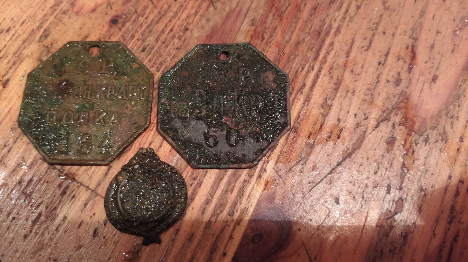 Добрый вечер. Подскажите по жетонам. 1) 4 Р. 2-го Крон. Кр. Арт полка 164. 2) 13 р. 199 п. Крп. 60. 3) Кокарда?