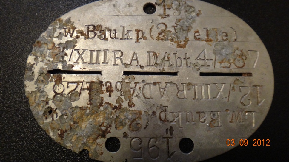 QUOTE(Зяблик @ Aug 28 2012, 10:21) Серег, а что там, просто сброс жетонов или ещё что либо попадается? Интересный расклад. Разные роды войск в одном месте. Это часом не выход на Осиповичи? Тот весенний, то же панцер Лёнь, там всё гораздо интереснее.Там сброс кителей со всем барахлом в карманах и жетонов.По пуговицам не считал, да и не копал все, но около 15-ти кителей.Но...без наград и без всяких обвесов.На небольшом пятаке.Это не выход на Осиповичи, это на 40 км. на юго-запад.Пытался найти то что сбросили ранее, но пока безуспешно.... Кстати скинь весеннего панцера сокращения, интересно для статистики |