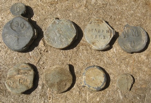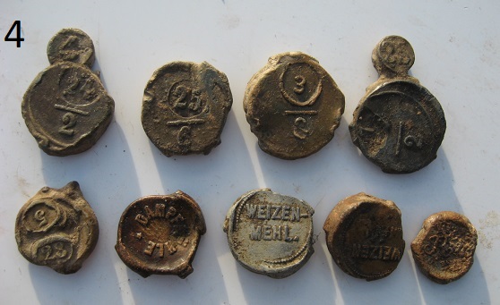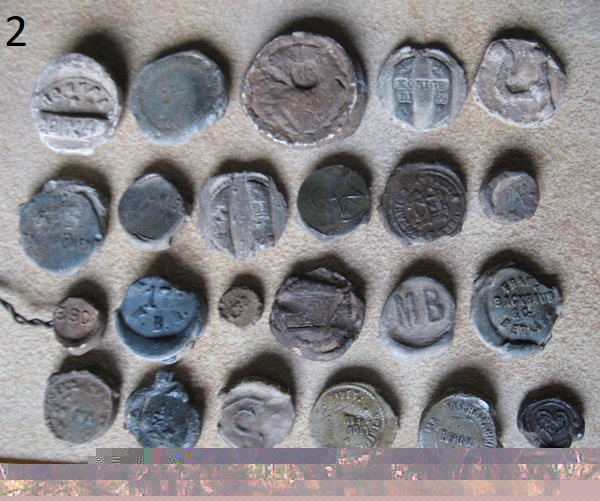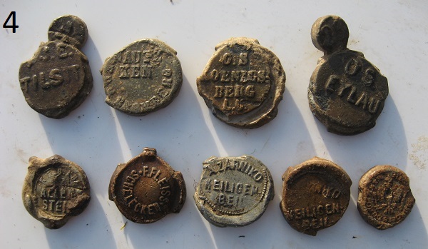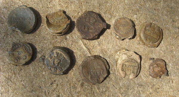 9 пломб с названиями населённых пунктов Восточной Пруссии.