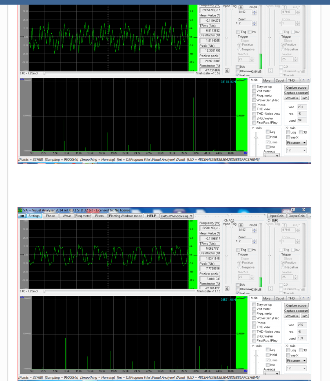 QUOTE(PUHH @ Sep 30 2019, 08:26) Мульти пляж(снизу на фотке) и мульти парк/поле/золото (сверху нафотке) сильно отличаются по форме: Ну и если я правильно помню, в потенте описывается только принцип, без привязки к конкретным параметрам сигнала - т.е. сигнал мультиайкю может быть любым Ну так и в Vanquish разные режимы будут иметь различную форму тока накачки... Вот пляж - сигнал и спектор ![]() ![]() Вот золото (поле парк) аналогично ![]() ![]() Наглядно видно, что базовая частотная составляющая, во всех режимах мульти одинаковая, уровни гармоник только меняются. |