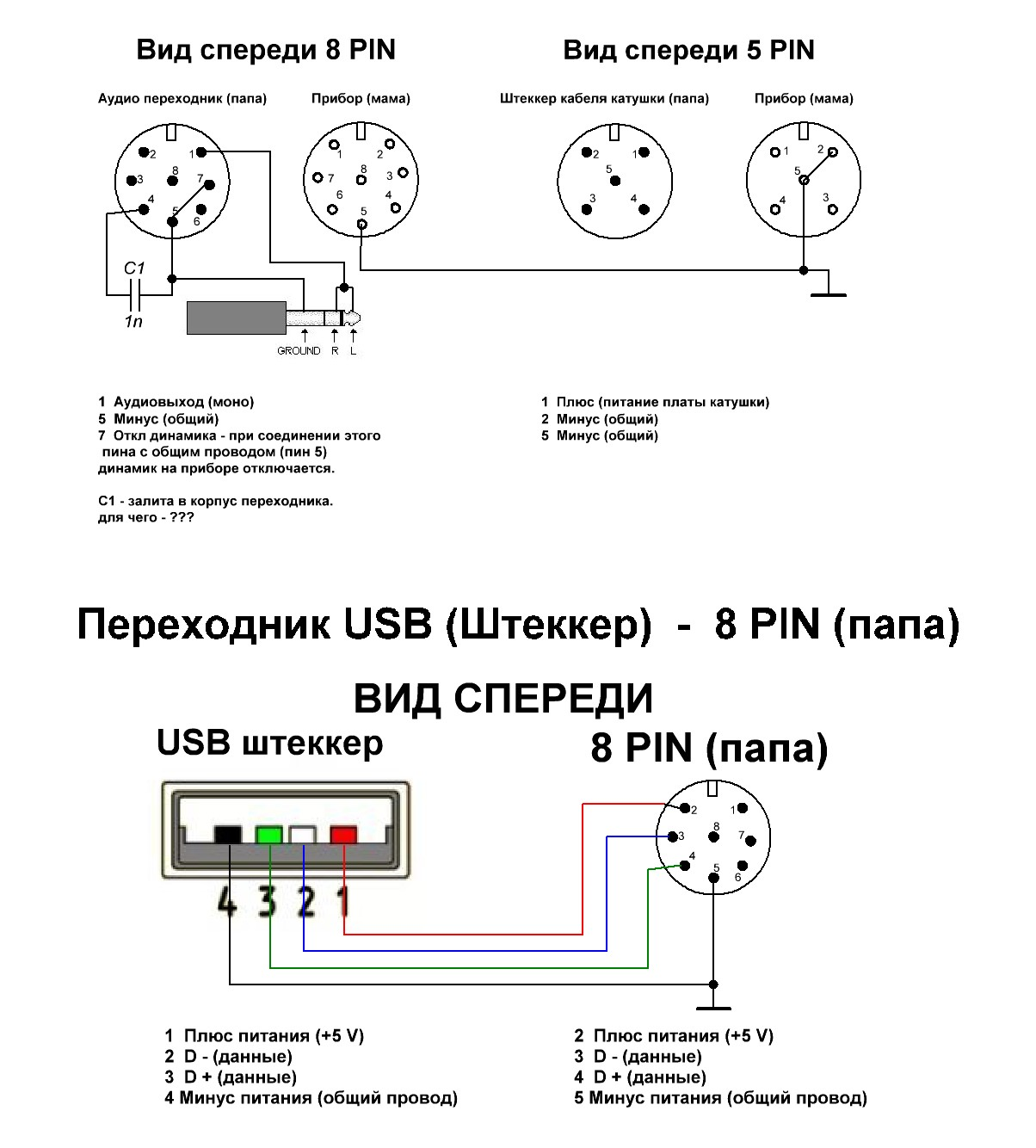 QUOTE(Valeriq @ Mar 18 2020, 23:50) Обновил распиновку. Хочу уточнить по данной схеме "Переходник USB" это для кабеля зарядки или.. какой переходник вы имели ввиду? И подойдет ли данная распиновка для Голд Крузера? (на рус сайте нокта макро говорится о совместимости с Simplex+, Anfibio, Gold Kruzer, Kruzer) У вас же сим+? ************** Целью является зарядить Голд Крузер: Правильно ли я понял что от ЮСБ берем + (1 красный) и соединяем с 2ым пин в 8ми пиновом раъеме, а минус (4 черный) от ЮСБ тянем к 5му пину 8ми пинового разъема и зарядка пойдет? Сообщение отредактировано Ярослав Т.: Apr 29 2022, 03:15 Вложенные эскизы изображений |