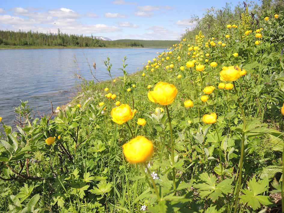 Средняя скорость передвижения по тундре под рюкзаком вне дорог - 2,5-3 км/ч, то есть обычно часик - два в пути приходится провести по любому. Но вот и река! На Севере лето коротко и по тому приход тепла и Полярного дня - это просто вспышка, буйство растительности: цветут купавы и одуваны, каждая малая травинка и цветочек спешат жить, цвести и давать жизнь другим поколениям Вложенные эскизы изображений |