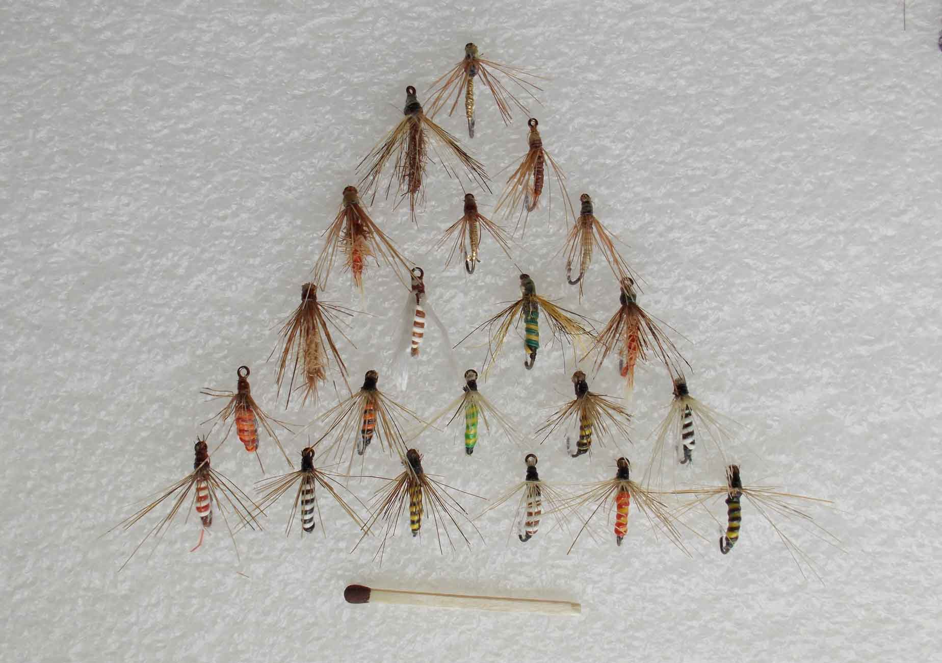 Приметой начала весеннего (летнего) клёва в наших местах служит простое правило: после вылета первых комаров надо выждать пару недель и можно отправляться на рыбалку: значит уровень воды упал, а на бывших разливах образовались лужицы и влажные участки, вода в них прогрелась и обеспечила появление на свет различных летающих насекомых. Если в эти 2 недели не было дождей, то далёкая река не только убавила уровень, но и наверняка её воды уже достаточно просветлели. Уже завербился прибрежный ивняк, полезла первая листва, тундра полыхнула цветами - наступило не только календарное, но настоящее северное лето. Веснянок, обильно ползавших по мелководью и прибрежным камням стало меньше, зато в неветреную, относительно тихую погоду в назначенное время (читаем выше) появляются комары и различные мотыльки. И в это время можно наблюдать всплески хариуса, охотящегося на этих маленьких летунов. Вся эта ситуация говорит о том, что, вероятно, пора переходить на другие приманки - верховые и подгруженные искусственные мушки. Ну, к примеру- делаются просто, служат годами, ловят килограммами, надо просто оглянуться вокруг и даже не выходя из дома (имея крючки) без всяких там приспособ, просто руками - пальцами можно навязать мушек и для себя и для друзей. Мушки на одинарниках - для оснастки "Балда", на тройничках - тоже для Балды и для "кораблика" сменные оснастки для динамичной ловли с применением удилища наматываются на круглые мотовильца и в таком виде, в коробочке и транспортируются Вложенные эскизы изображений |