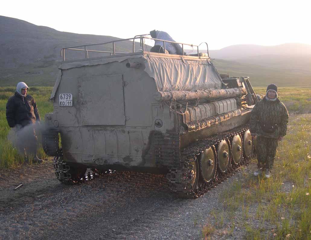Конечно, с вездеходом мы договаривались заранее, но так уж получилось, что накануне нашего приезда он сломался и наш вездеходчик едва ли не двое суток в одиночку его восстанавливал. Абы как тут нельзя - впереди 130 км пути и случись чего за подмогой идти будет далеко и долго.